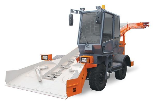 Снегоуборочная машина DM-09 с лаповым питателем и скребковым транспортером специально разработана для российских дорог и погрузки снега в транспортные средства.