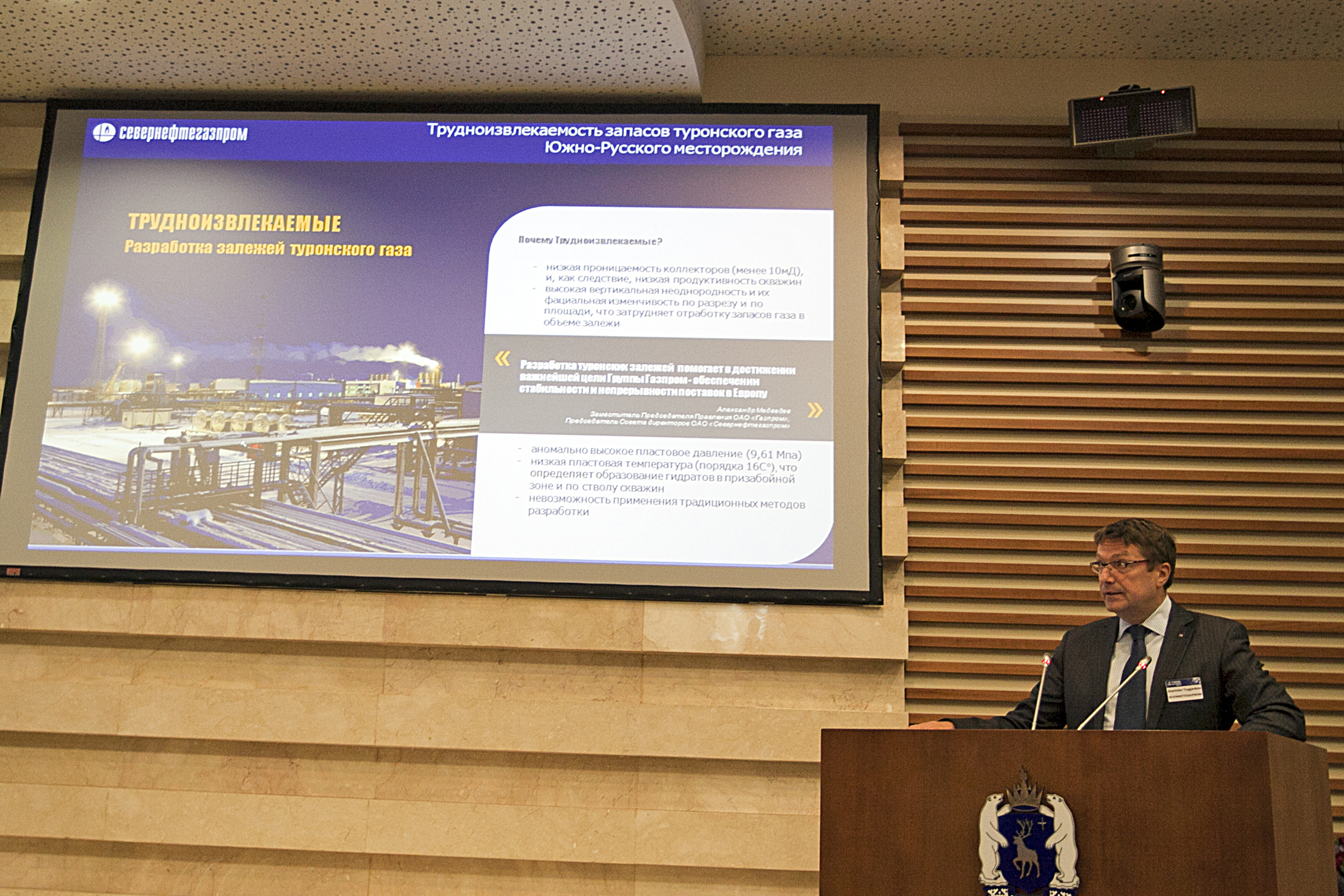 Довольно ожидаемым оказался интерес к докладу генерального директора «Севернефтегазпрома» Станислава Цыганкова, который докладывал о состоянии проекта по добыче туронского газа Южно-Русского месторождения, принятых там организационных и технических решениях. Этот газ относится к категории трудноизвлекаемых, и результаты опытно-промышленной эксплуатации туронской залежи крайне интересуют газодобытчиков. Именно этот вопрос, как обещают организаторы конференции, станет темой аналогичного конференции мероприятия в Югре, которое пройдет осенью 2014 года.